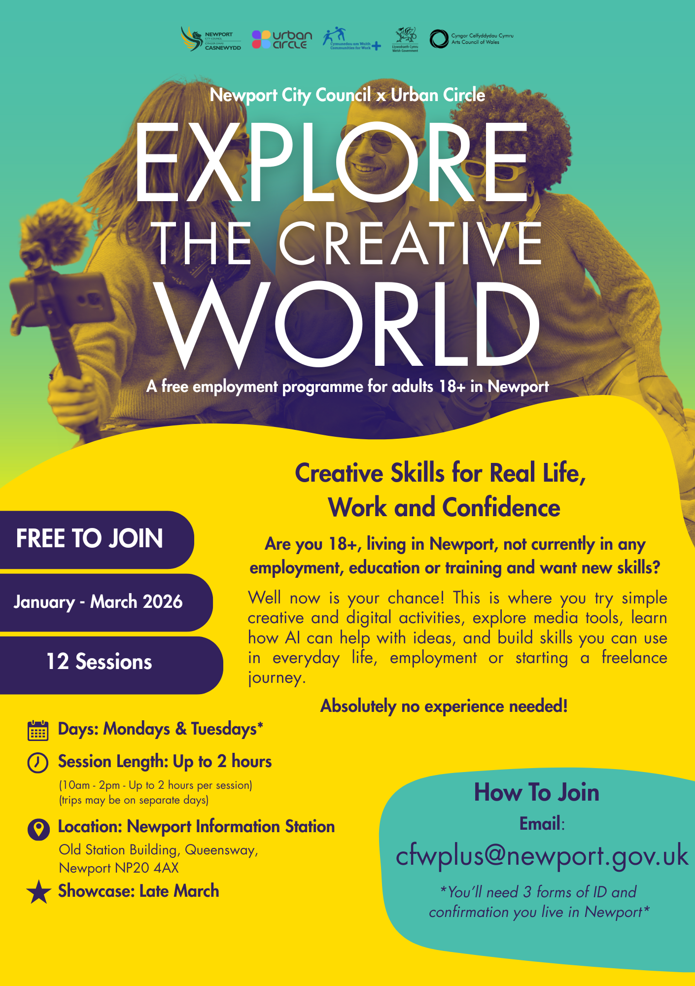In collaboration with Newport City council we have a free creative and digital programme for adults aged 18+ in Newport this February–March.